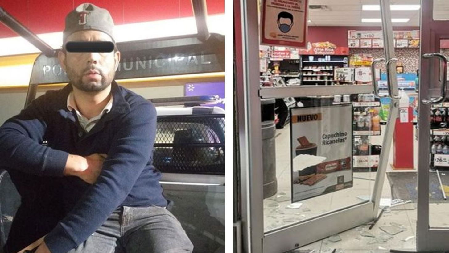 Hermosillo, Sonora.- Emilio, de 31 años, fue detenido durante la madrugada de este miércoles, luego de provocar daños en una tienda de conveniencia situada en los bulevares Camino del Seri y Quintero Arce.
