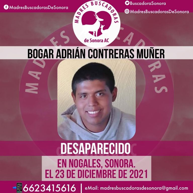 Nogales, Sonora.- Momentos de angustia vive una familia que pide la ayuda de la comunidad para encontrar a Bogar Adrián Contreras Muñer, quien se encuentra en calidad de desaparecido desde hace varios días en Nogales, Sonora.