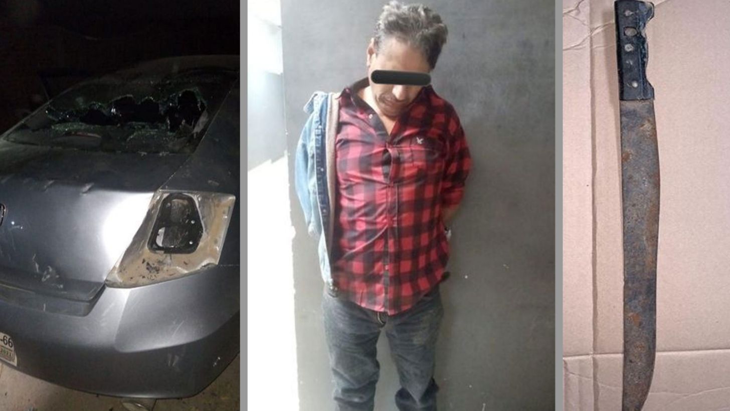 Indicó a los agentes municipales que el individuo dañó con machete el vidrio del piloto, medallón, micas de luces traseras y la carrocería del vehículo Honda Accord gris.
