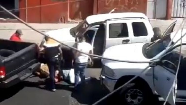 Sus secuaces procedieron a ir por él a tiros y empujones lograron juntar a la pareja, donde fueron brutalmente golpeados con las mismas armas de fuego que portaban sus agresores, '¡te quieres pasar de verg... hijo de tu pu... madr...!' gritó uno de los sujetos mientras le propinaba un culatazo con la pistola a una de las víctimas.