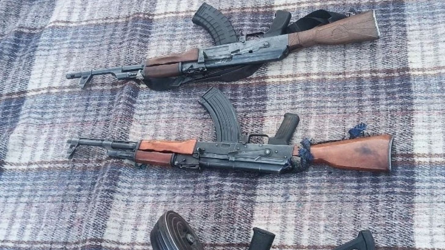 Además, se les incautaron 5 armas de fuego conocidas como AK-47, una mochila con 15 cargadores, 4 chalecos balísticos, 640 envoltorios de sustancia similar al narcótico y una cubeta con 138 púas.