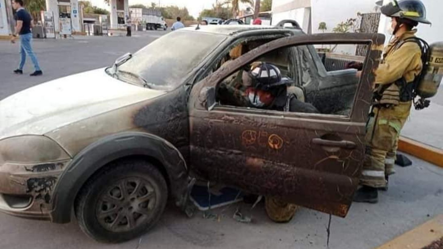 El hombre se puso a salvo y dio aviso a los encargados del lugar, mientras el humo en la camioneta era cada vez más intenso. Los trabajadores de la gasolinera fueron por un extintor.