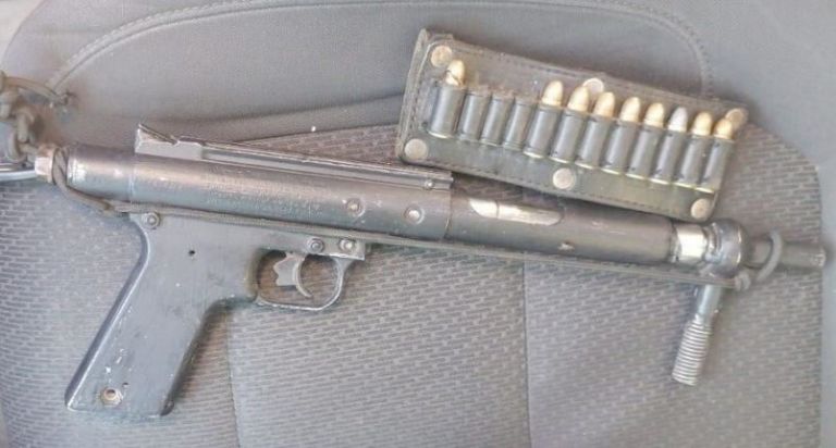 Los elementos policiales y militares logran detenerlo y evitar que escapara, percatándose que el objeto se trataba de un arma larga color negro, de fabricación casera, con una cartuchera con nueve balas útiles, calibre .38.