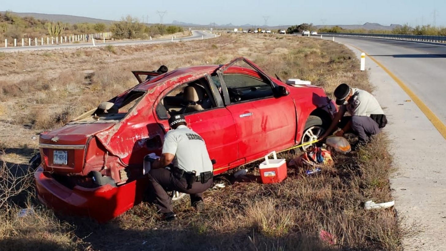 Guaymas, Sonora.- Durante la mañana de este martes 30 de marzo se registró un nuevo accidente en el tramo carretero Guaymas-Hermosillo que dejó un saldo de una mujer muerta y tres lesionados.