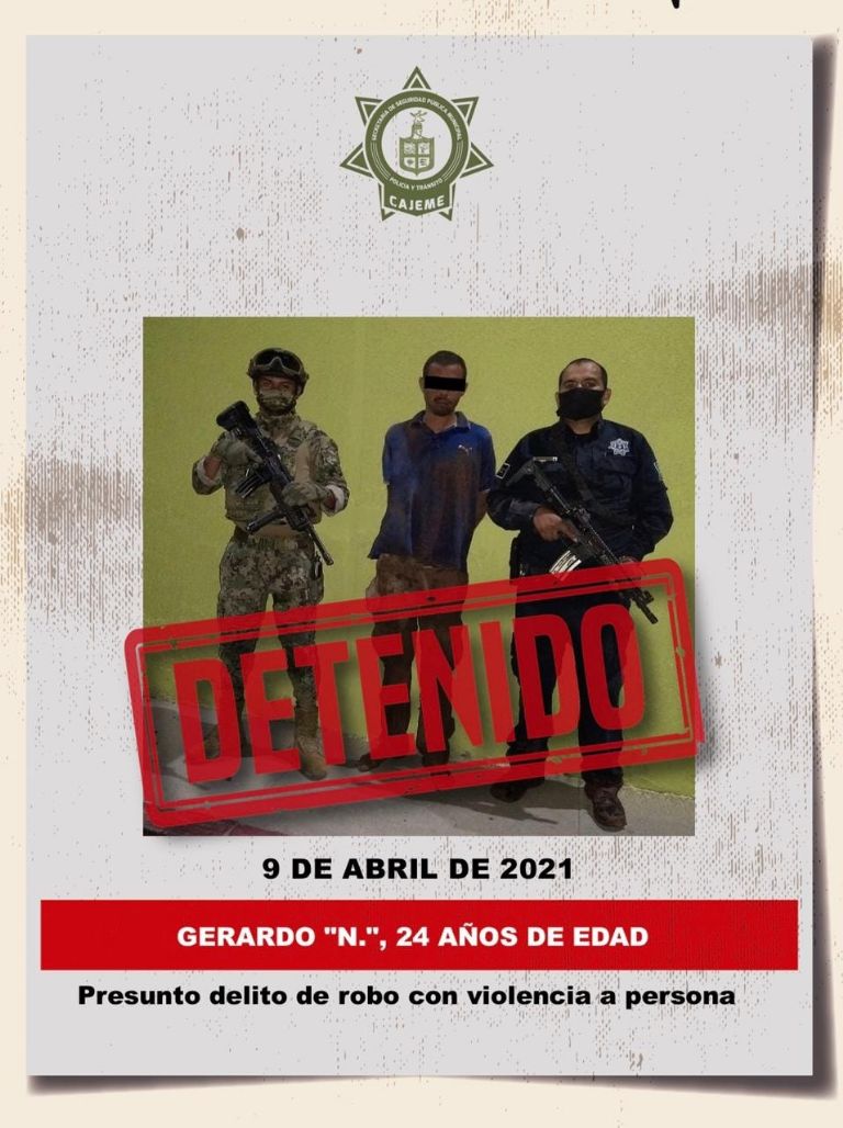Ciudad Obregón, Sonora.- La Secretaría de Seguridad Pública Municipal de Cajeme infirmó este sábado que en coordinación con la Secretaría de Marina, capturaron durante la noche del pasado viernes a un hombre en la comisaría de la Marte R. Gómez.