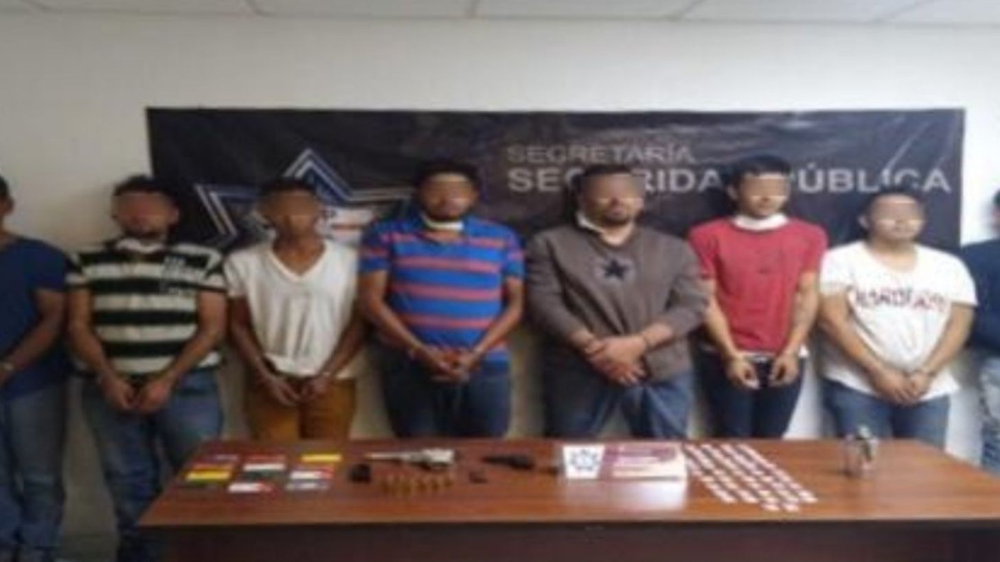 Los sujetos, identificados como Jaime Benjamín 'N', Edgar Ignacio 'N', Jonathan Alfonso 'N', José Eduardo 'N', Javier 'N', Rafael 'N', Jonathan Misael 'N' y Juan Carlos 'N', fueron esposados, además incautárseles dos armas de fuego y dosis de diversas drogas.