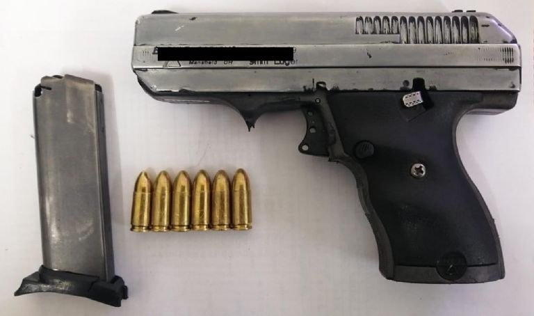 Al solicitarle bajar del vehículo para la inspección correspondiente, la mujer señaló que su acompañante le había dado a guardar un arma, la cual se encontraba en su mochila; se procedió a la revisión, efectuando el hallazgo de un arma de fuego calibre .9 milímetros con seis cartuchos útiles.