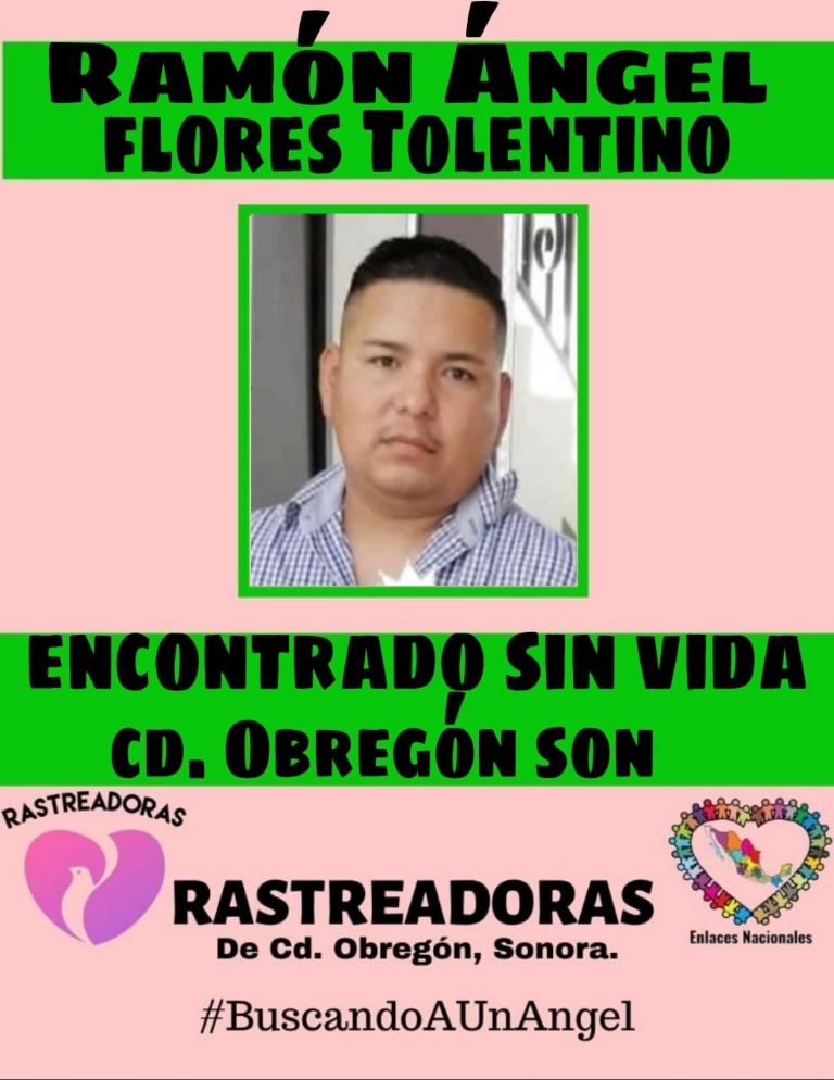 Ciudad Obregón, Sonora.- El colectivo Rastreadoras de Ciudad Obregón reveló este martes que fue localizado el cuerpo sin vida de Ramón Ángel Flores Tolentino, hombre reportado como desaparecido en 2020 en Ciudad Obregón.