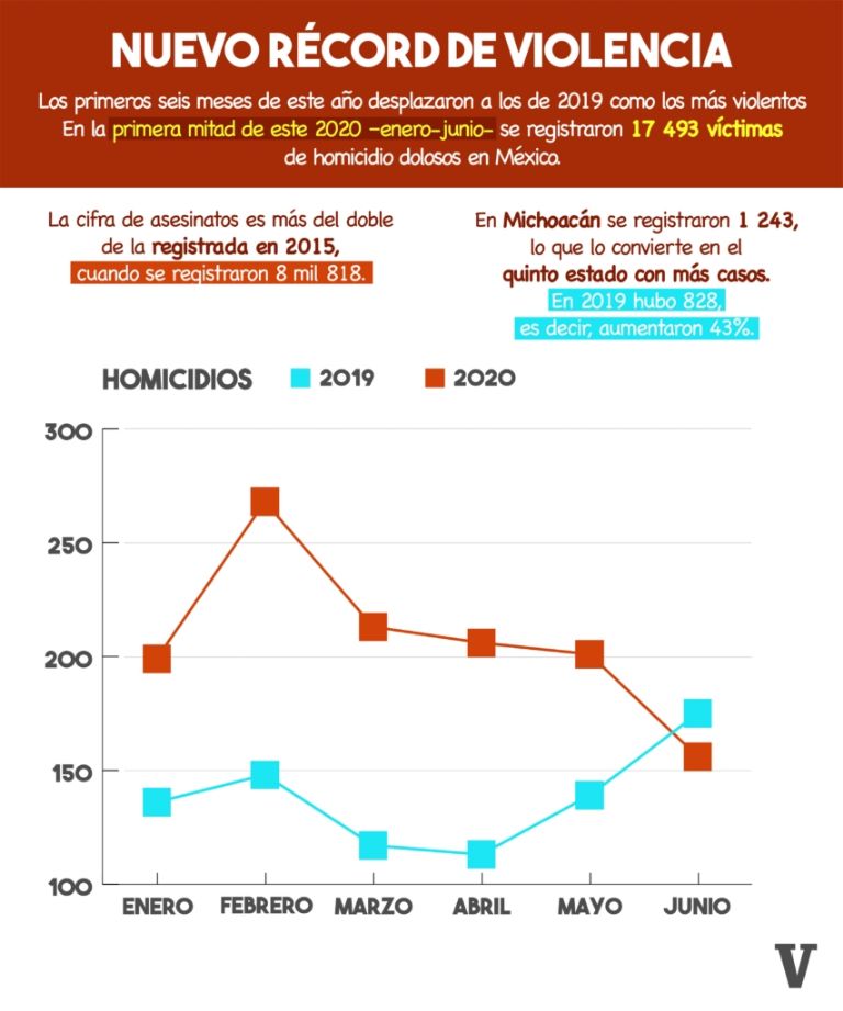 A nivel nacional, Michoacán ocupa la quinta posición con mayor número de homicidios, solo por debajo de Guanajuato, Baja California, Jalisco y Estado de México. En 2020, la entidad registró 621 delitos por homicidio doloso, de acuerdo con datos de la Secretaría de Seguridad y Protección Ciudadana de México.