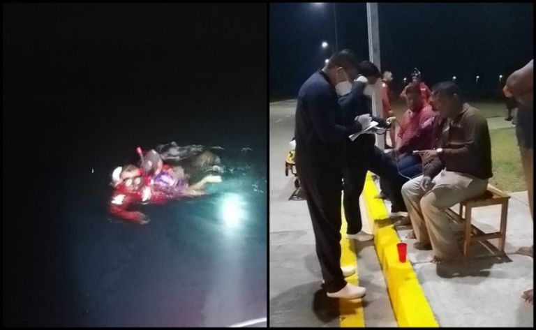 De acuerdo con la dependencia, los cinco rescatados se encontraban a bordo de una nave pesquera que terminó por hundirse frente a las costas del puerto, dejándolos a la deriva y en peligro.