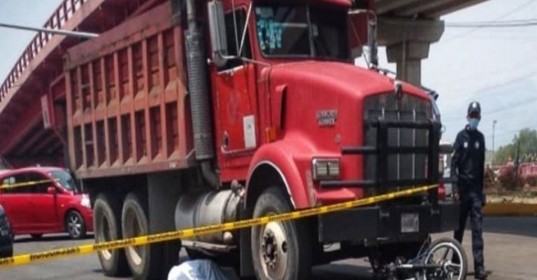 En consecuencia del incidente, el cuerpo del conductor del vehículo a dos ruedas quedó tendido boca arriba sobre la carpeta asfáltica, justo debajo de las llantas delanteras del pesado transporte.