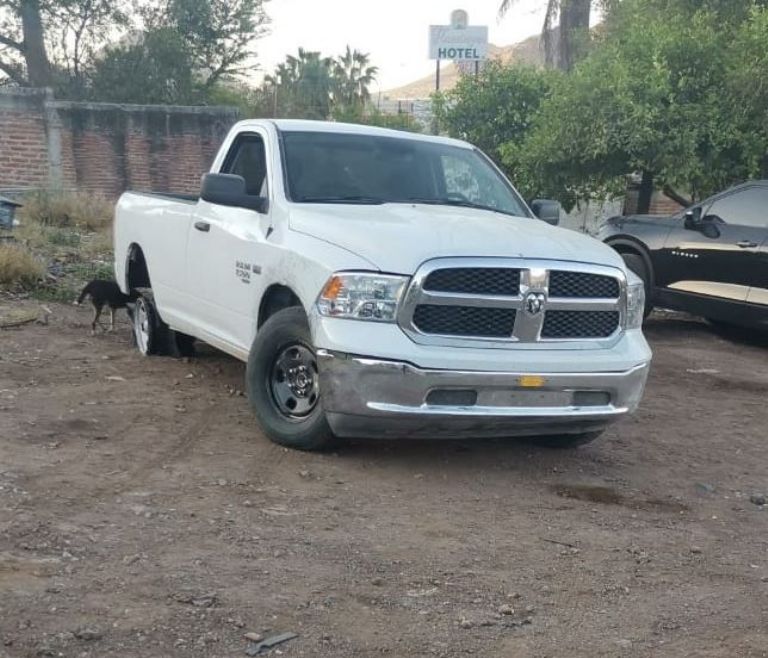 La camioneta es de la marca Dodge Ram Hem i2500, modelo 2020, con placas del estado de Arizona. El arma larga es una AK-47 de color negro, con plateado, con la leyenda escrita 'Century Arms', calibre 7.62X39, mismo calibre de los cartuchos asegurados.