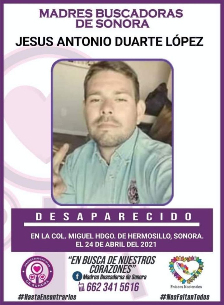 Por su parte, el colectivo Madres Buscadoras de Sonora compartió la ficha de búsqueda de Jesús Antonio y solicitó a las personas que cualquier dato que se tenga para encontrarlo sea informado a las autoridades a través de la línea de emergencias.