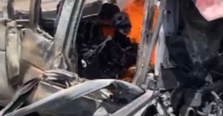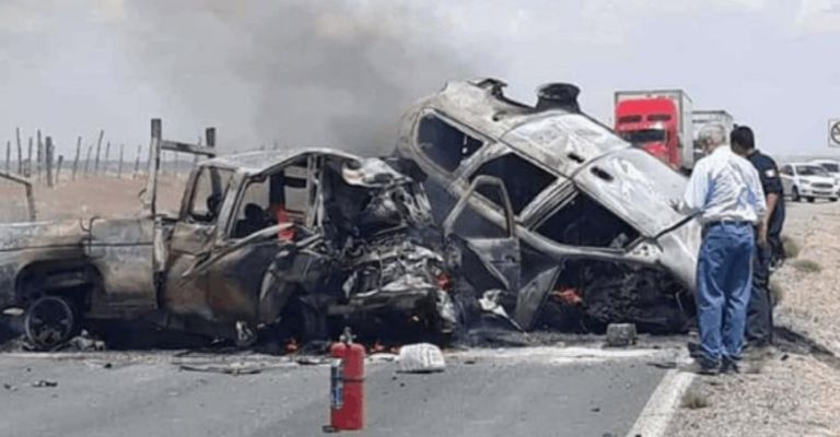 Chihuahua, Chihuahua.- Hace algunas horas se reportó un brutal accidente en una carretera de Chihuahua que dejó saldo de al menos cuatro personas muertas, todas de ellas calcinadas.