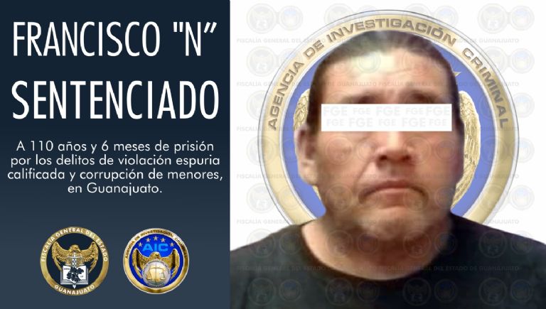 Guanajuato, Guanajuato.- La Fiscalía General de Guanajuato informó que se le dictó sentencia a Francisco 'N' por el delito de violación y corrupción de menores en el mismo estado.