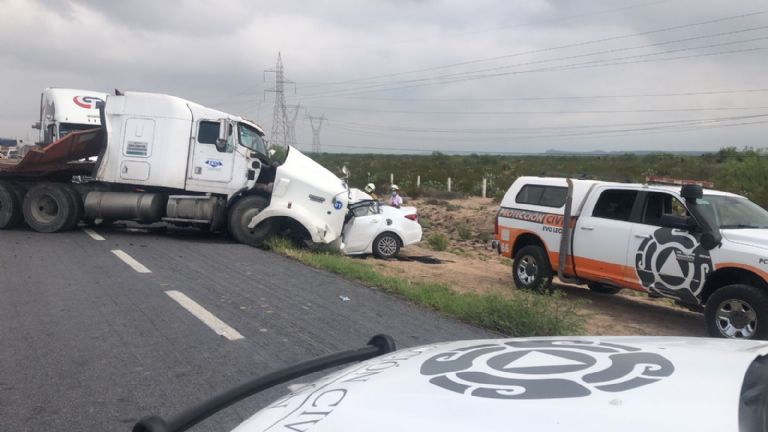 Según con la información de testigos, el tráiler habría invadido el carril donde circulaba el automóvil, por lo que el conductor de este último ya no pudo maniobrar y se impactó de frente.