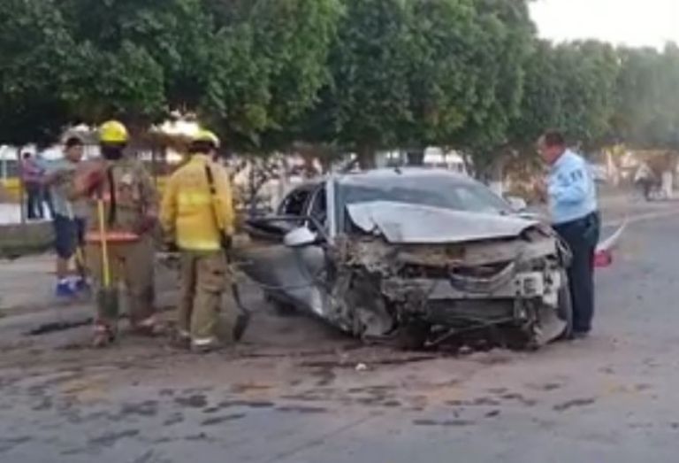 El percance tuvo lugar alrededor de las 18:20 horas, cuando un automóvil se impactó contra la guarnición de la banqueta y contra un árbol sobre el Bulevar Las Torres entre Calzada Francisco Villanueva y bulevar Circunvalación.