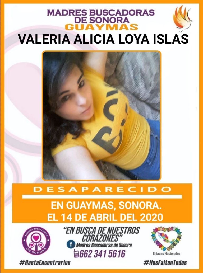 Guaymas, Sonora.- El colectivo Madres Buscadoras de Sonora reveló este martes 25 de mayo que la joven Valeria Alicia Loya Islas, residente de Guaymas, se encuentra en calidad de desaparecida desde hace más de un mes.