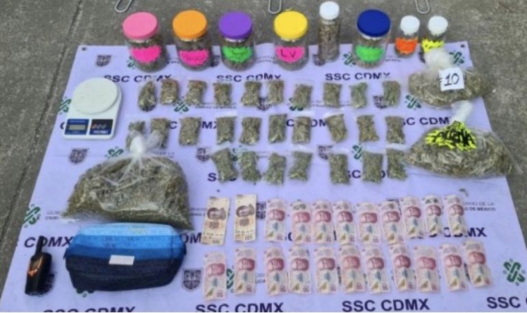 En ese orden de ideas, se informó que cinco bares más ubicados en el inmueble antes mencionado, fueron cateados donde se logró resguardar dinero, una báscula y diversas cantidades de una hierba que en apariencia es marihuana.