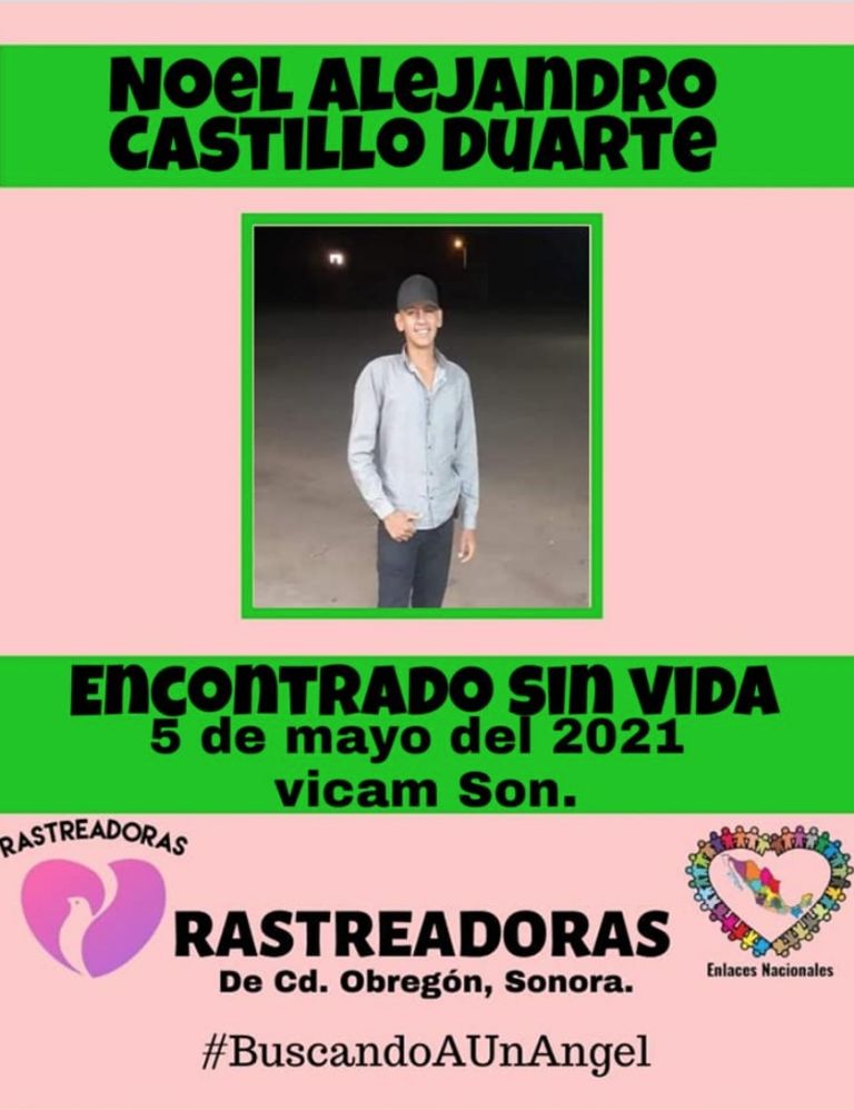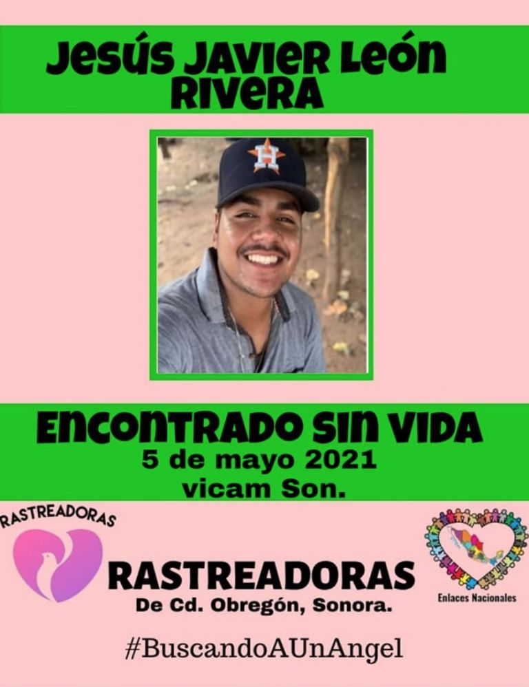 Ambos perdieron el contacto con familiares desde el lunes 3 de mayo y se les reportó como desaparecidos. Lamentablemente, este jueves sus familiares y el colectivo de Rastreadoras de Ciudad Obregón confirmaron que fueron hallados muertos.