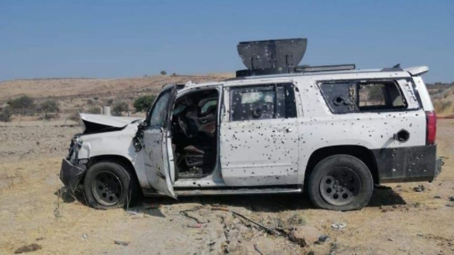 Al respecto, autoridades estatales y personal de la Guardia Nacional arribaron al lugar y encontraron a un hombre muerto y con las manos esposadas, una finca incendiada, dos granadas que no detonaron y nueve vehículos baleados, de los cuales cuatro de ellos estaban blindados.