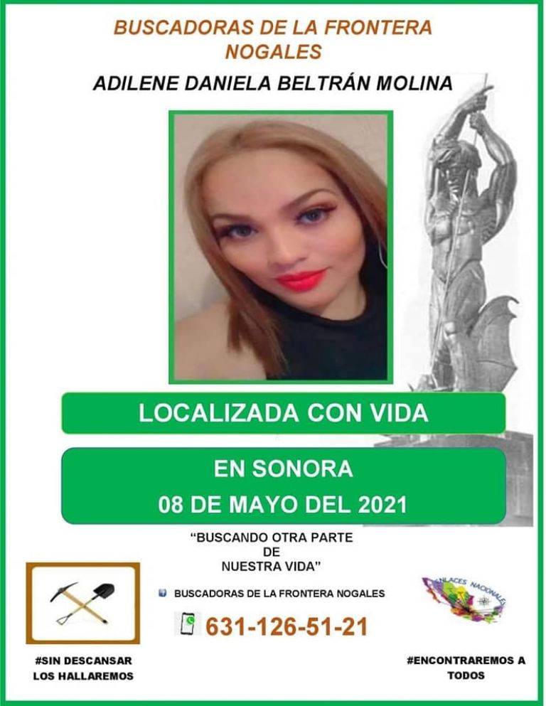 Fue el colectivo Buscadoras de la Frontera Nogales, quien a través de Facebook reveló que la extraviada fue encontrada con vida, sin embargo no se revelaron mayores datos, ya que el caso está sujeto a una investigación por la posible comisión de un delito.