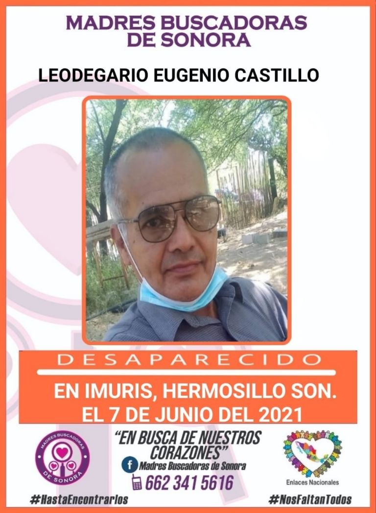 Ímuris, Sonora.- La tarde de este jueves 10 de junio el colectivo Madres Buscadoras de Sonora reportó la desaparición del señor Leodegario Eugenio Castillo, de quien no se sabe nada desde hace varios días en el municipio de Ímuris.