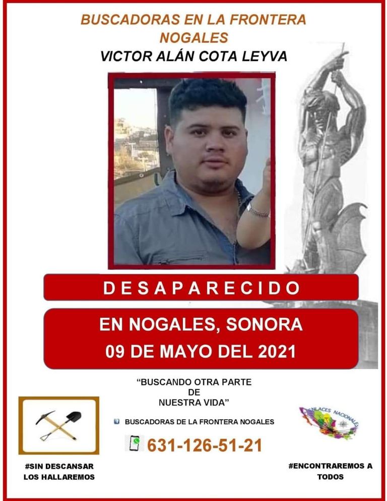 Nogales, Sonora.- La tarde de este miércoles, el colectivo Buscadoras de la Frontera Nogales informó sobre la lamentable desaparición del joven Víctor Alán Cota Leyva, de quien no se sabe nada desde hace casi un mes en Nogales.