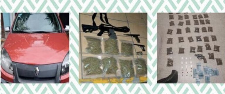 Durante la detención se les aseguraron tres armas de fuego cortas y una larga, así como envoltorios de presunta droga y dos vehículos tras recibir el reporte de una riña con armas de fuego.