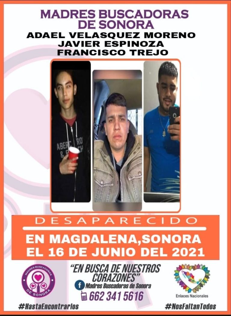 Así lo reveló el colectivo Madres Buscadoras de Sonora, quien a través de su cuenta de Facebook compartió la ficha de búsqueda de los tres hombres y detalló que fueron vistos por última vez la madrugada del pasado 16 de junio.