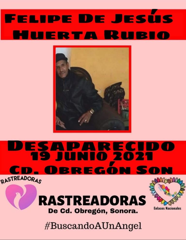 Ciudad Obregón, Sonora.- El colectivo Rastreadoras de Ciudad Obregón informó sobre la desaparición del señor Felipe de Jesús Huerta Rubio, de quien nada se sabe desde hace varios días en Ciudad Obregón.