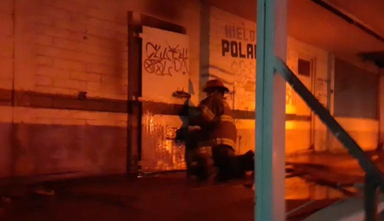 Fue cerca de las 21:00 horas que los 'tragahumo', luego de que se recibiera una llamada a la línea de emergencia 911 por el siniestro, se movilizaron a las calles Olivares y Campeche, donde las llamas consumían un inmueble abandonado que por años funcionó como una expendedora de hielo.