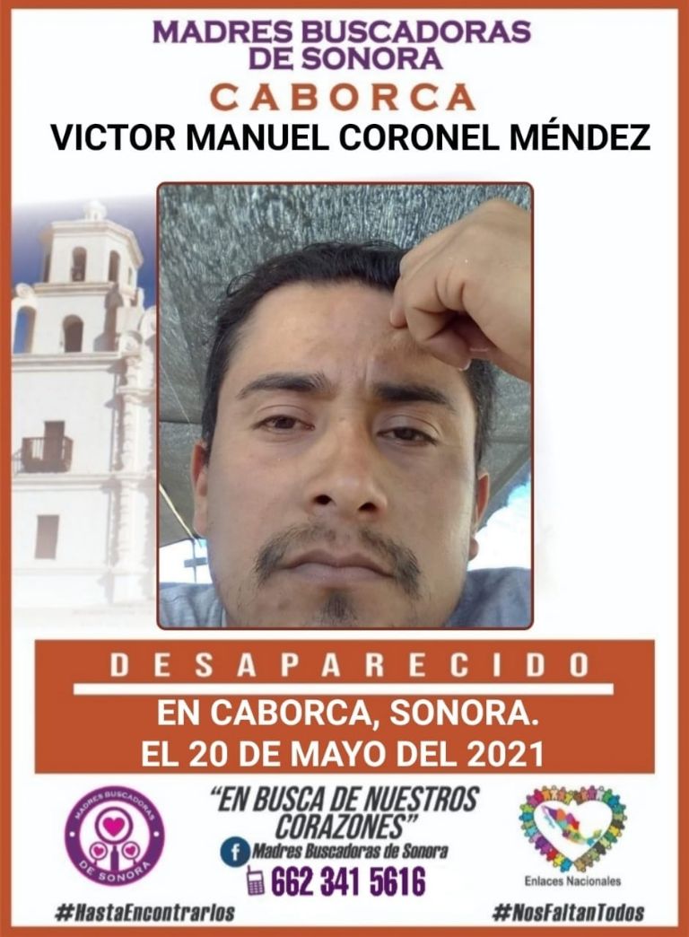 Caborca, Sonora.- Desde el pasado 20 mayo de que nada se sabe de Víctor Manuel Coronel Méndez, hombre originario de la comunidad de Olinalá, Guerrero, que viajó hacia el estado de Sonora por motivos laborales y desapareció.