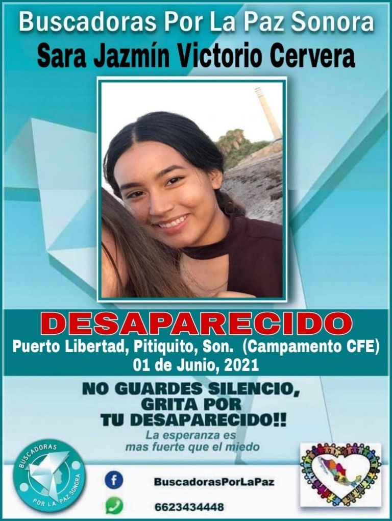 Puerto Libertad, Sonora.- Amargos momentos de angustia son los que están viviendo los familiares de Sara Jazmín Victorio Cervera, joven que se encuentra desaparecida desde el pasado 1 de mayo en Puerto Libertad, municipio de Pitiquito.