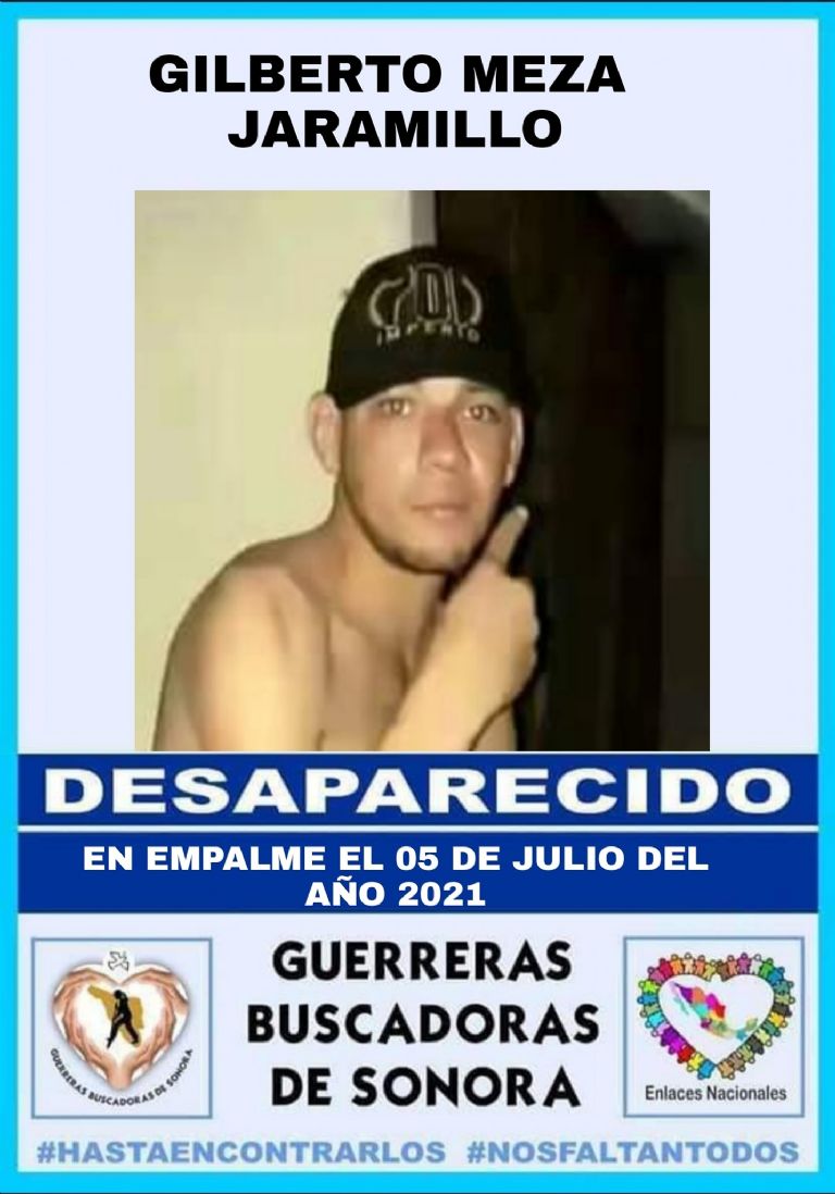 Empalme, Sonora.- Recientemente el colectivo Guerreras Buscadoras de Sonora reportó la lamentable desaparición de Gilberto Meza Jaramillo, de quien no se sabe nada desde hace una semana en la ciudad de Empalme, Sonora.