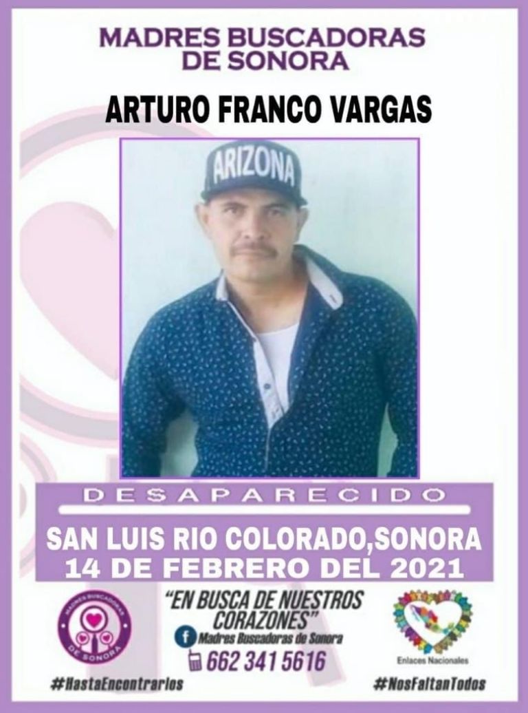 San Luis Río Colorado, Sonora.- Los último meses han sido se angustia y sufrimiento para la familia de Arturo Franco Vargas, quien desapareció sin dejar rastro hace 5 largos meses en la ciudad de San Luis Río Colorado, Sonora.