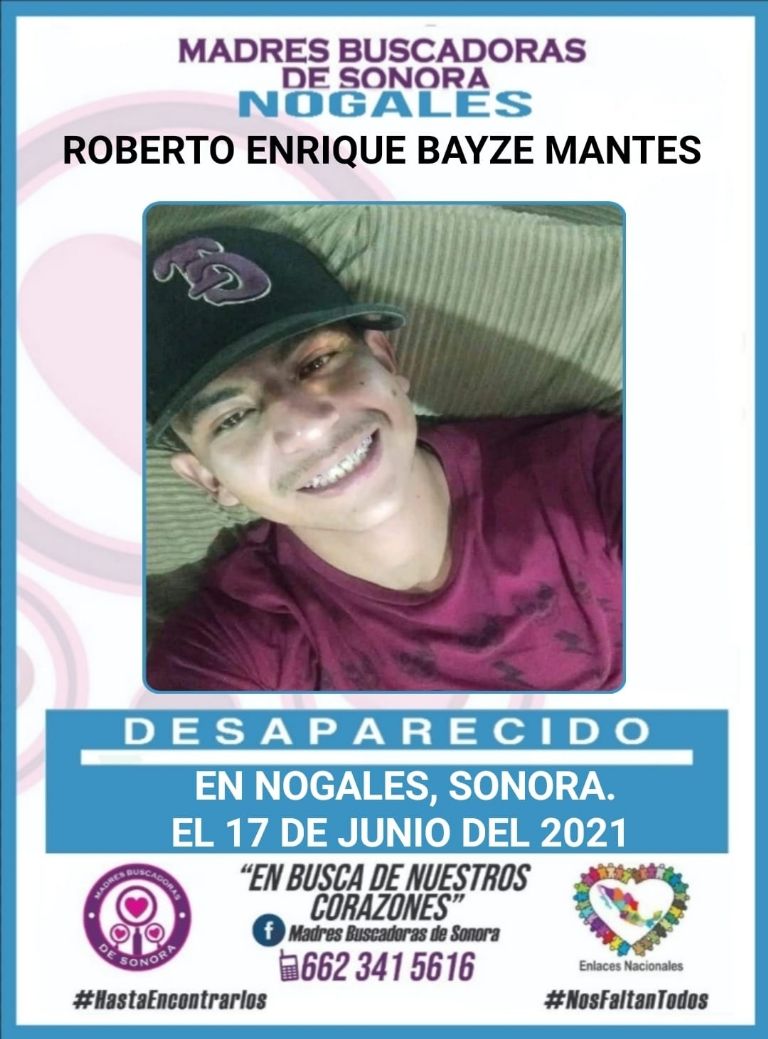 Así lo informó el colectivo Madres Buscadoras de Sonora, quien a través de redes sociales compartió la ficha de búsqueda de Roberto Enrique y detalló que la última vez que sus allegados supieron algo de él fue el 17 de junio de 2021.
