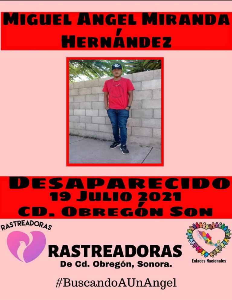 Se trata de Miguel Ángel Miranda Hernández, el cual fue visto por última vez el lunes 19 de julio de 2021 al salir de su vivienda y hasta el momento no se sabe nada de él, pues dejó responder a las llamas telefónicas.