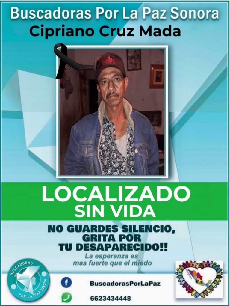 Los familiares de Cruz Mada realizaron diversas publicaciones en Facebook para localizar al señor sano y salvo y detallaron que la última vez que había sido visto fue aquél viernes en el ejido El Tazajal, municipio de Hermosillo.