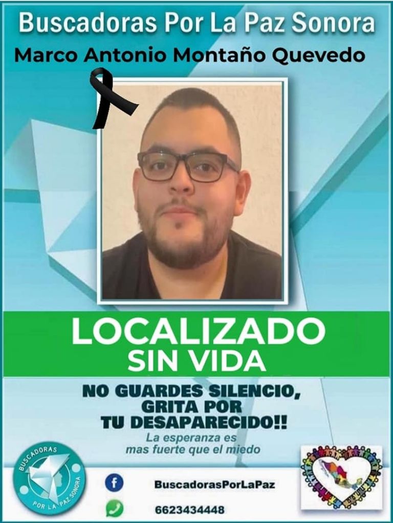 Poco más de 3 meses después, los resultados de las pruebas de genética arrojaron que habían encontrado a Marco Antonio Montaño Quevedo y a Marco Antonio Montaño Espinoza, desaparecidos desde abril de 2020.