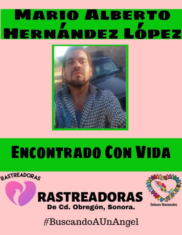 San Ignacio Río Muerto, Sonora.- Hace varias semanas Mario Alberto Hernández López fue reportado como desaparecido en San Ignacio Río Muerto, Sonora, pero por fortuna esta tarde de jueves trascendió que fue encontrado con vida.