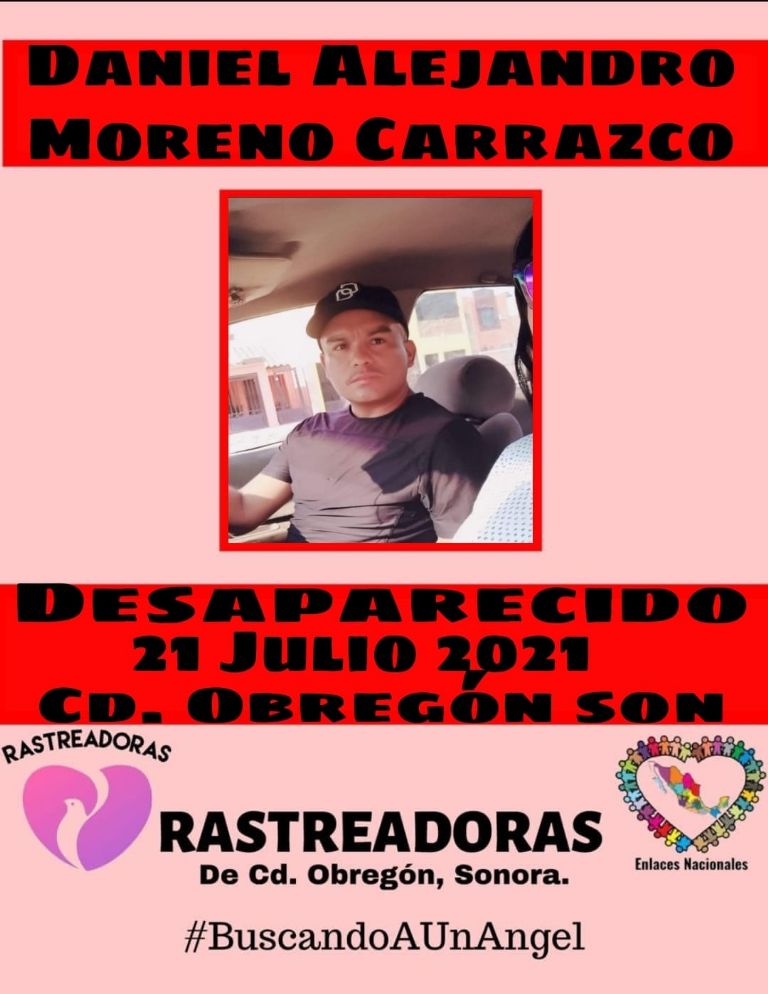 Ciudad Obregón, Sonora.- El pasado viernes 23 de julio, el colectivo Rastreadoras de Ciudad Obregón informó sobre la infortunada desaparición de Daniel Alejandro Moreno Carrazco, de quien no se sabe nada desde hace varios días en Ciudad Obregón, Sonora.