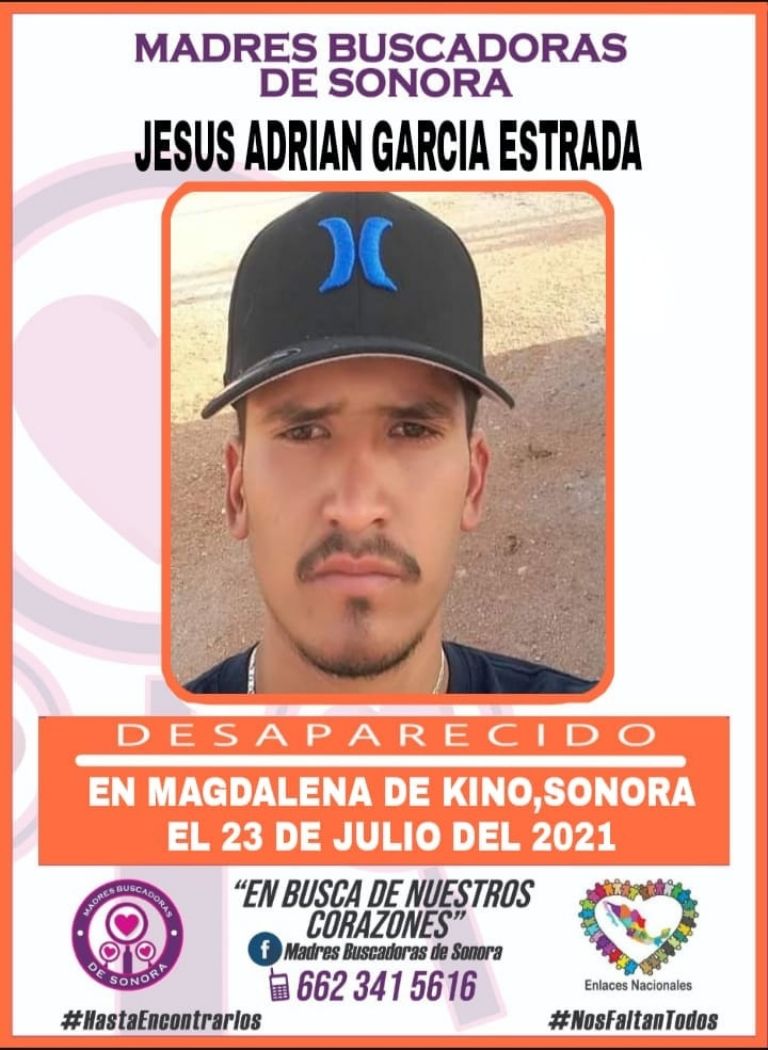 Magdalena de Kino, Sonora.- Desde hace varios días que la familia de Jesús Adrián García Estrada reportó su repentina desaparición en Magdalena de Kino; desde entonces no han parado de buscarlo y aún mantienen la esperanza de que regrese a casa.