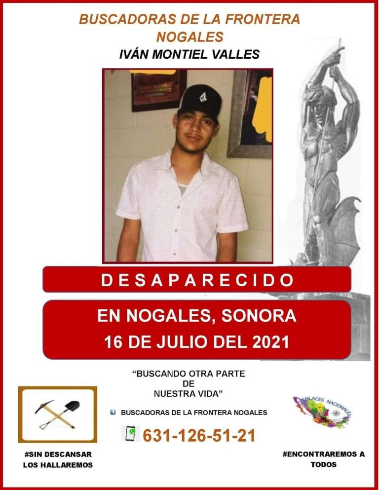 Nogales, Sonora.- El colectivo Buscadoras de la Frontera Nogales informó ayer martes 27 de julio sobre la lamentable desaparición del joven Iván Montiel Valles, quién es buscado desesperadamente por sus familiares.
