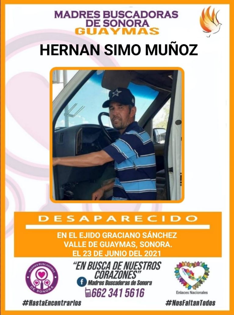 Guaymas, Sonora.- Angustia, preocupación e incertidumbre vive la familia de Hernán Simo Muñoz, al no saber nada sobre su paradero desde el pasado mes de junio, quien fue visto por última vez en el municipio de Guaymas.