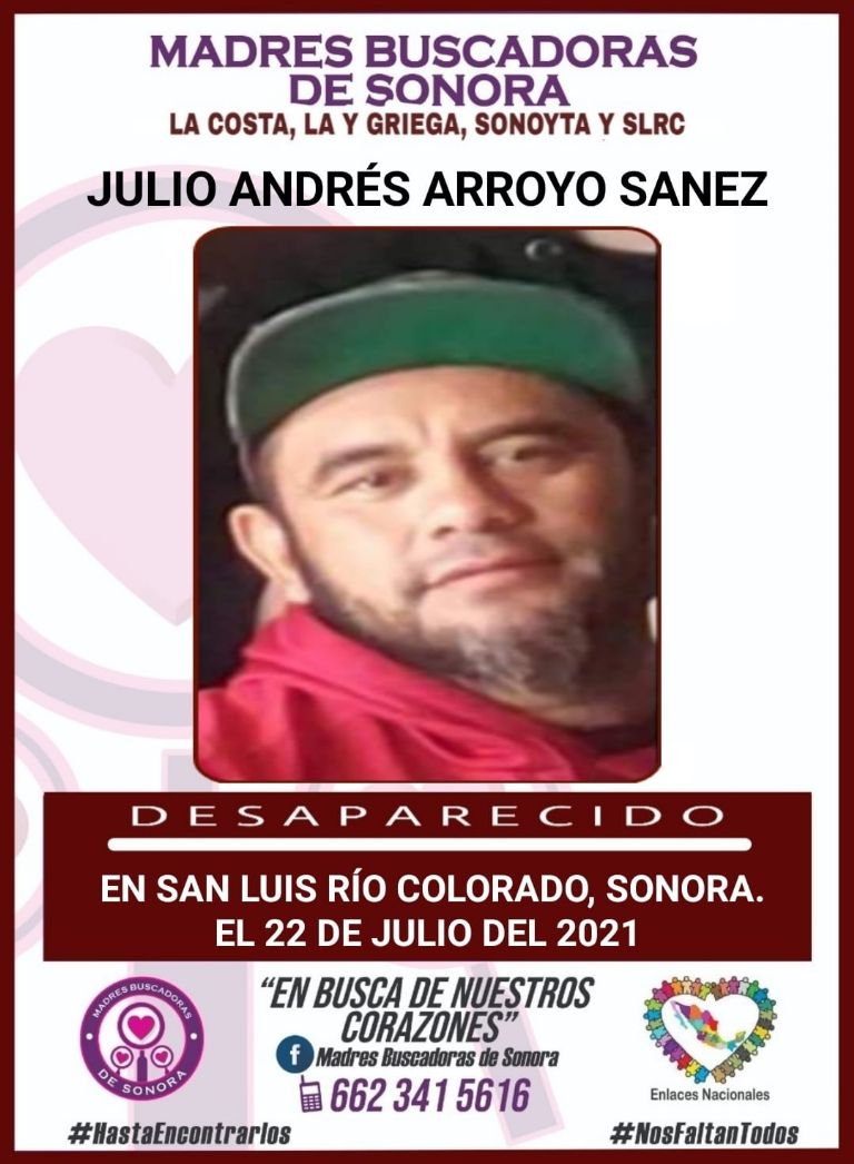 San Luis Río Colorado, Sonora.- Desde hace varios días que la familia Julio Andrés Arroyo Sáenz vive un auténtico martirio al no saber dónde está o cómo se encuentra, por lo que piden la ayuda de la comunidad para localizarlo sano y salvo.