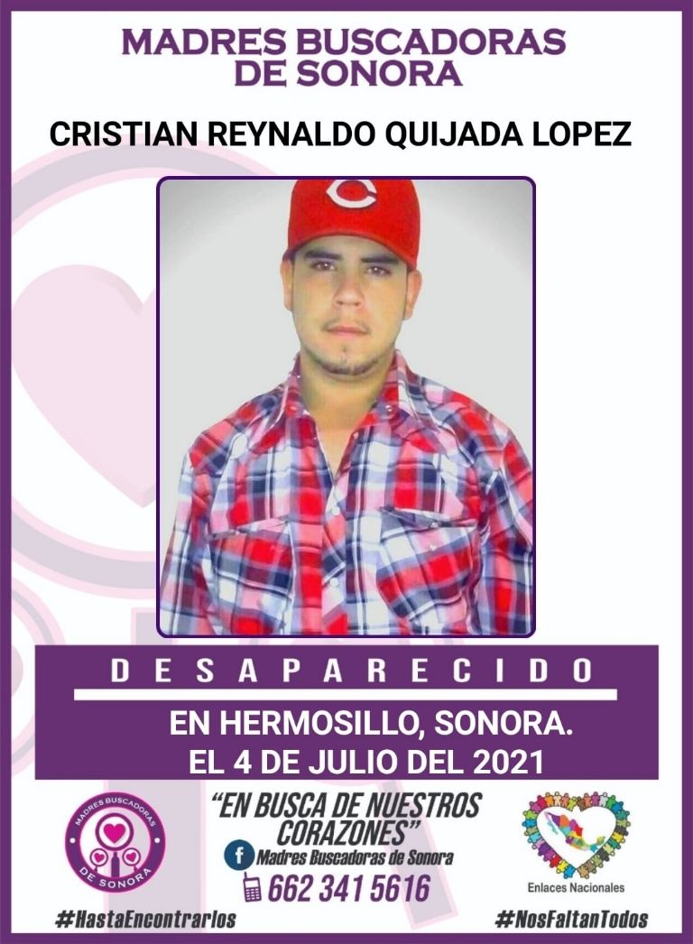 Hermosillo, Sonora.- En días recientes se informó que el joven Cristian Reynaldo Quijada López fue encontrado sin vida en su natal Hermosillo, Sonora, luego de que fuera reportado como extraviado a principios del mes de julio.