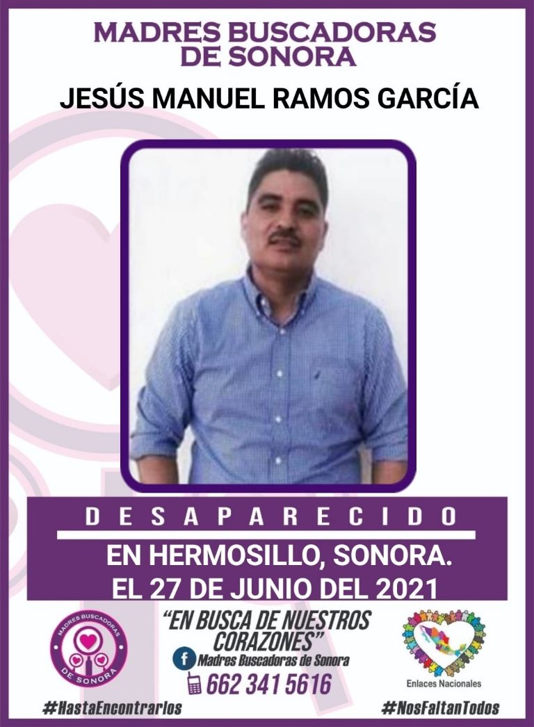 Hermosillo, Sonora.- Familiares piden la ayuda de la sociedad para encontrar al señor Jesús Manuel Ramos García, quien desapareció hace varios días tras acudir a la ciudad de Hermosillo, Sonora para buscar trabajo.