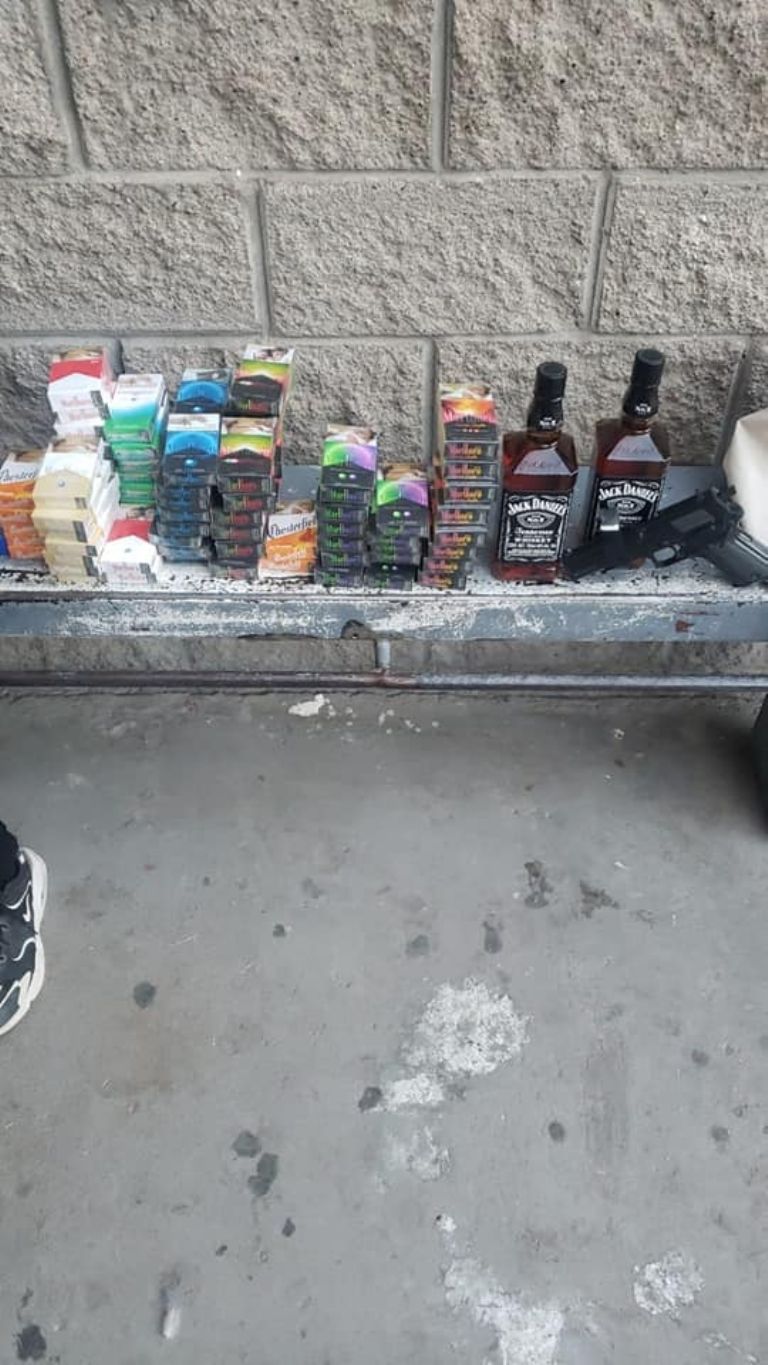El individuo fue identificado como Cristian Agustín 'N' de 20 años de edad, a quien se le aseguró dos botellas de licor, 80 cajetillas de cigarros y un ama de fuego falsa.