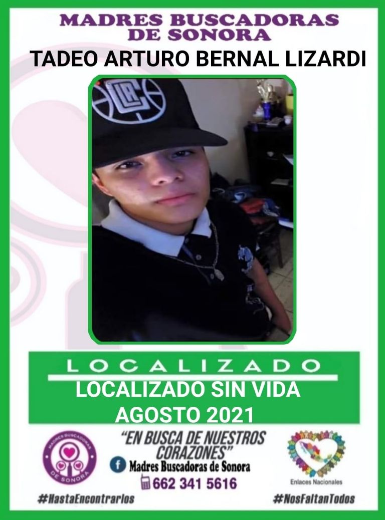 Nos unimos a la pena de la familia de Tadeo Arturo Bernal Lizardi, ya que lamentablemente fue localizado sin vida, que Dios les dé fortaleza", se lee.